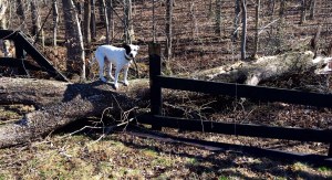 On Saturday, Cathy and I walk the fence line. Carmen helps us find one busted up fence section, but that was the only problem. The wind was still blowing, but nothing like Friday. Talking with neighbors, everyone seems to think we will have three or more days without power (**Whoops, past three now**). There are trees down everywhere, which means there are lots of small problems everywhere. We live in a bit of an isolated area, and the power company fixes those problems that effect the most people first. We know there’s a power line down about 3/4 of a mile away. It is on a path through the woods, and services only our small area. Hmmmm…