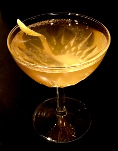 Shake, strain into a cocktail glass, garnish with a lemon peel, and enjoy. I think it’s bette with just a bit more lemon juice, but that’s just me.