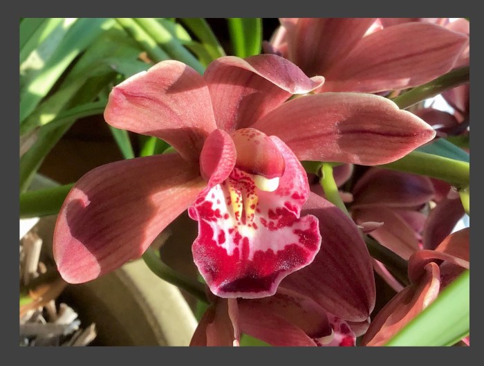 After years of living with Cathy and her orchids, I’ve grown to love them. Maybe not as much as she does, but I enjoy it when they bloom in the winter. The plants themselves aren’t all that much to look at, but oh, the flowers. Whether looking at the numerous budscapes, and seeing the blooms as a rush or color,