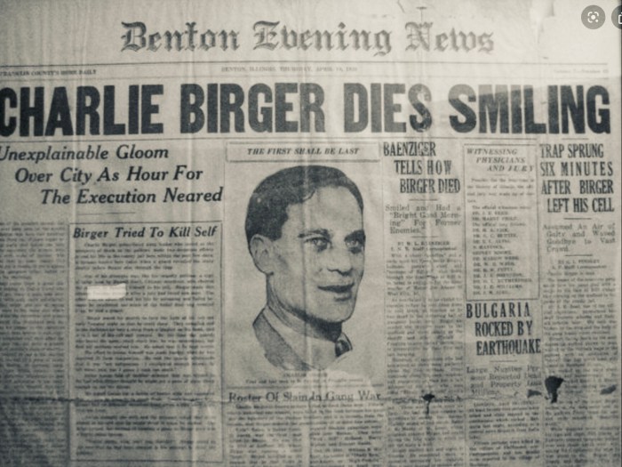 The problem was, they killed Mayor Adams in Franklin County, not Williamson County where Birger was influential. Birger was arrested and the trial was held in the town of Benton, in Franklin County. A jury subsequently found him guilty and sentenced Charlie to death. After all appeals were denied, a date was set for the hanging – April 19th, 1928.