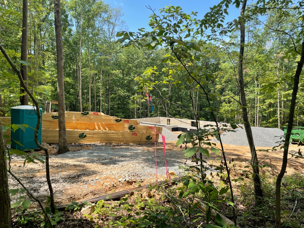 Now we know. The property was originally zoned to allow ten houses and the folks who bought the property are building those ten houses. A few on 2 acres, a few on 5-10 acres, and a couple on 20+ acre lots. The foundation is laid for the first of those houses, on one of the smaller lots.