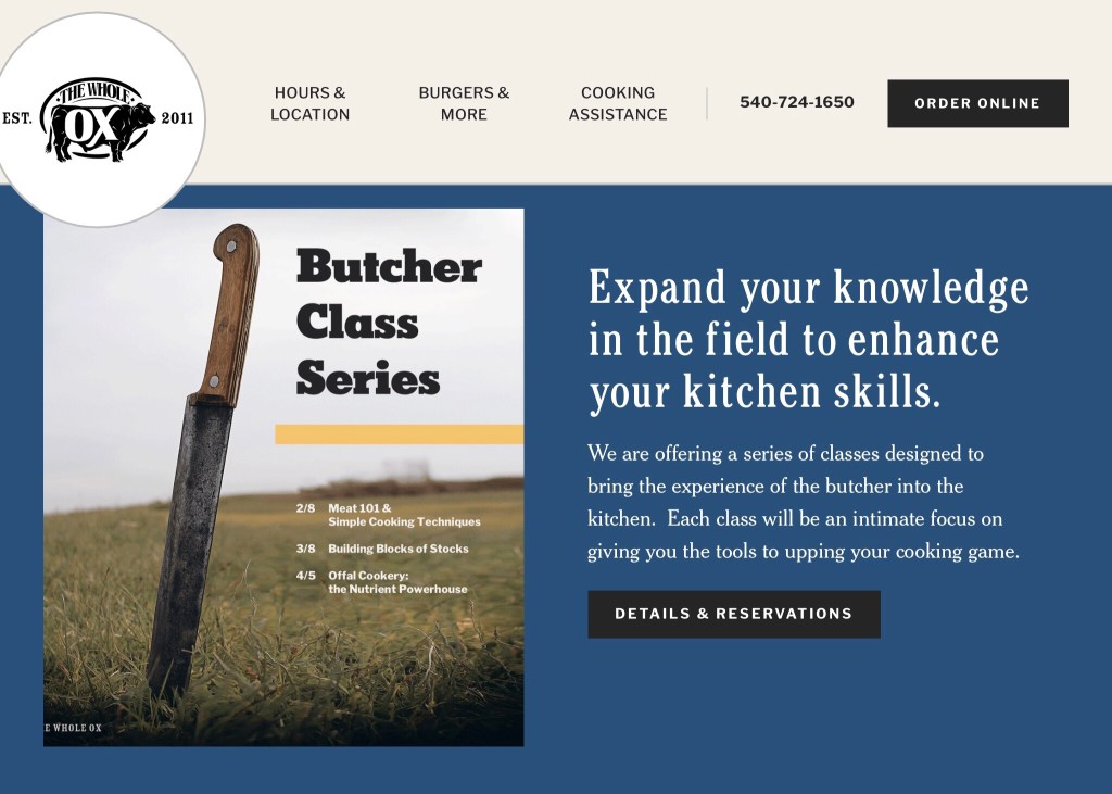 Marshall is a great little village with several good stores, diners and coffee shops. There are three local gems among the offerings. In addition to The Whole Ox, we also have the nationally renowned Red Truck Bakery, and the excellent Field and Main Restaurant. If you are in the area, all three are worth a visit.
