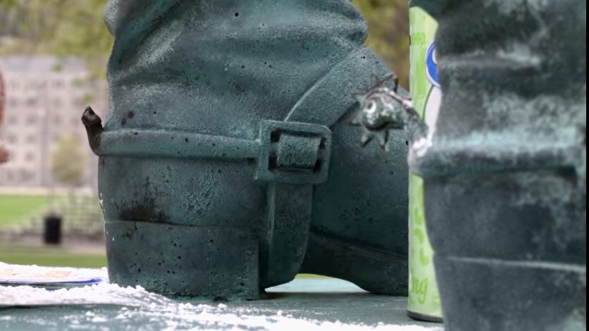 Arriving at the statue, he was shocked to see one of the spurs was broken and the other was in poor shape.
