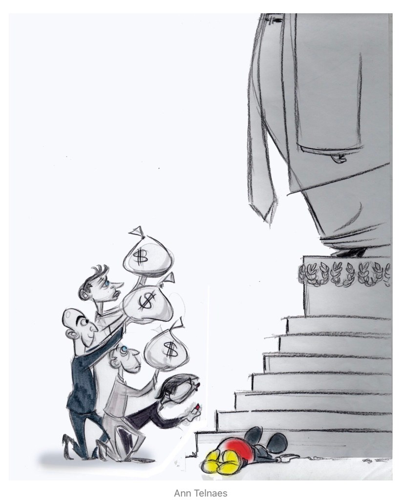 What set off the most recent wave of “Free Press” concerns? The Washington Post killed a cartoon by Pulitzer Prize winner, Ann Telnaes. Her crime? Her cartoon showed Bezos, Disney and other billionaires bowing in supplication before Mr Trump. Toooooooo controversial these days, I guess. Telnaes resigned in protest from the Post.