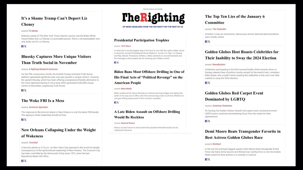 This is a very slippery slope. In my view, with the changing news environment Mr. Carville so aptly describes, the lines between news and editorial content continue to disappear. Influencers are not reporters. They are influencers, and everything that word implies. Meta’s decision to remove “fact checking” from their platforms and rely on users to add corrections or notes to posts is the most recent example of the blurring of lines. Gee, do we think there was any “anticipatory obedience” on Zuckerberg’s part with his decision? And, back to the weasels Joe and Mika – are they influencers?