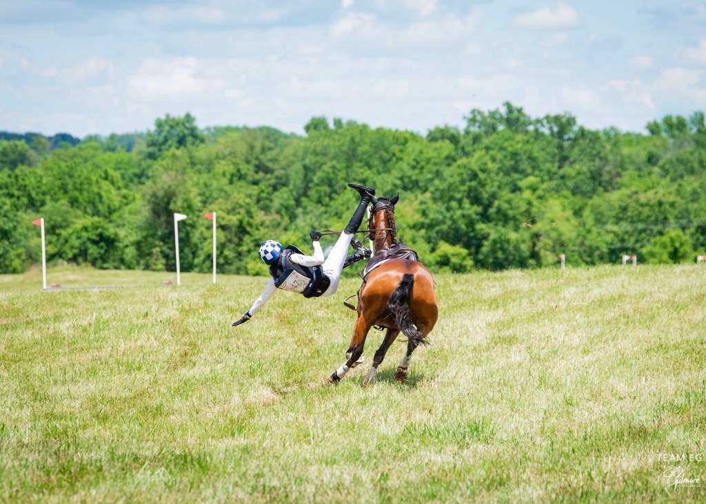 - * Our friend is an Eventer in the horse world and an accomplished rider. She was on the cross-country course when her horse bolted and was probably going between 30-35 mph. She was tossed in the air and fell from a height of about 8 feet.