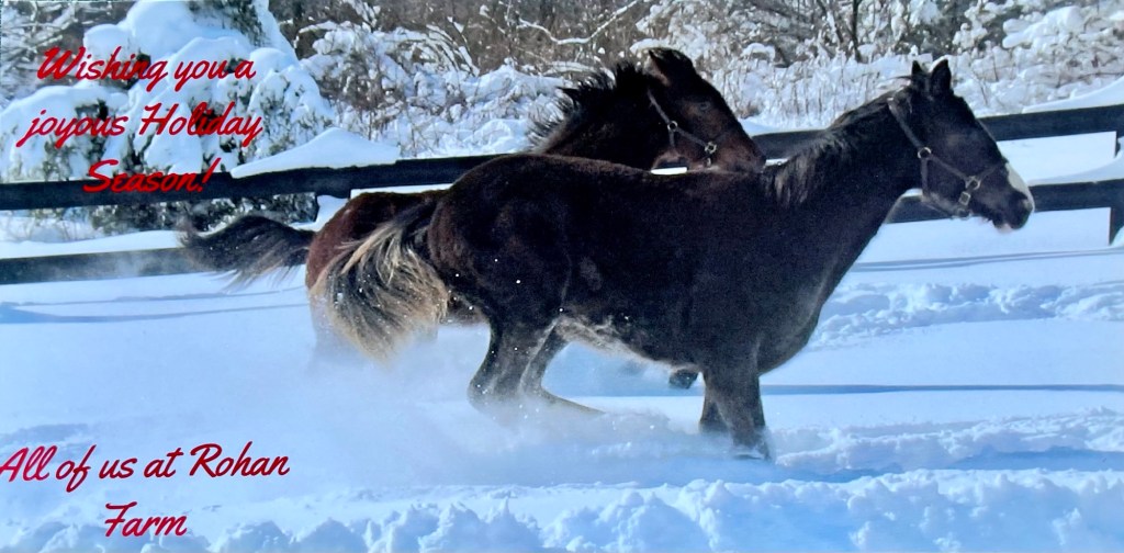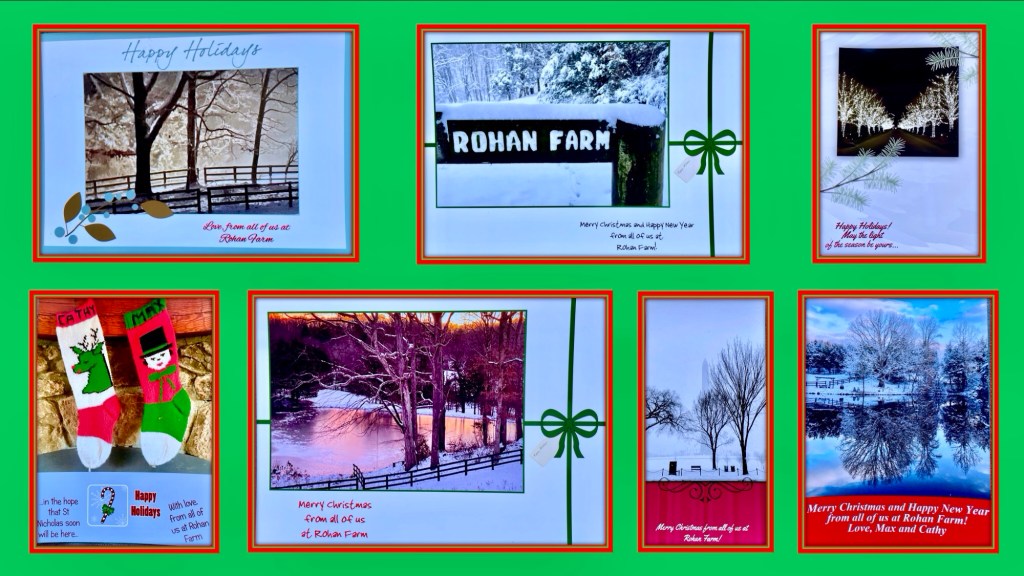 After moving to the country in ‘99, we migrated from store-bought cards to making our own from a photo of some winter scene here at the farm. For the last several years, we have also posted one of the cards on social media, sending greetings to our friends there as well.