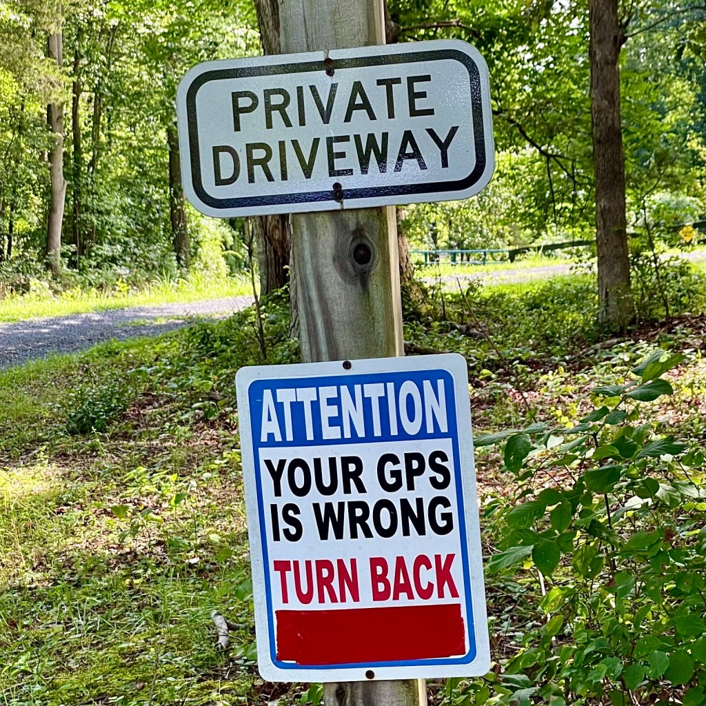 The problem was so prevalent, we eventually bought two signs. One saying it was a private drive. A second sign telling people their GPS was wrong and to turn around. They helped, but didn’t stop everyone.