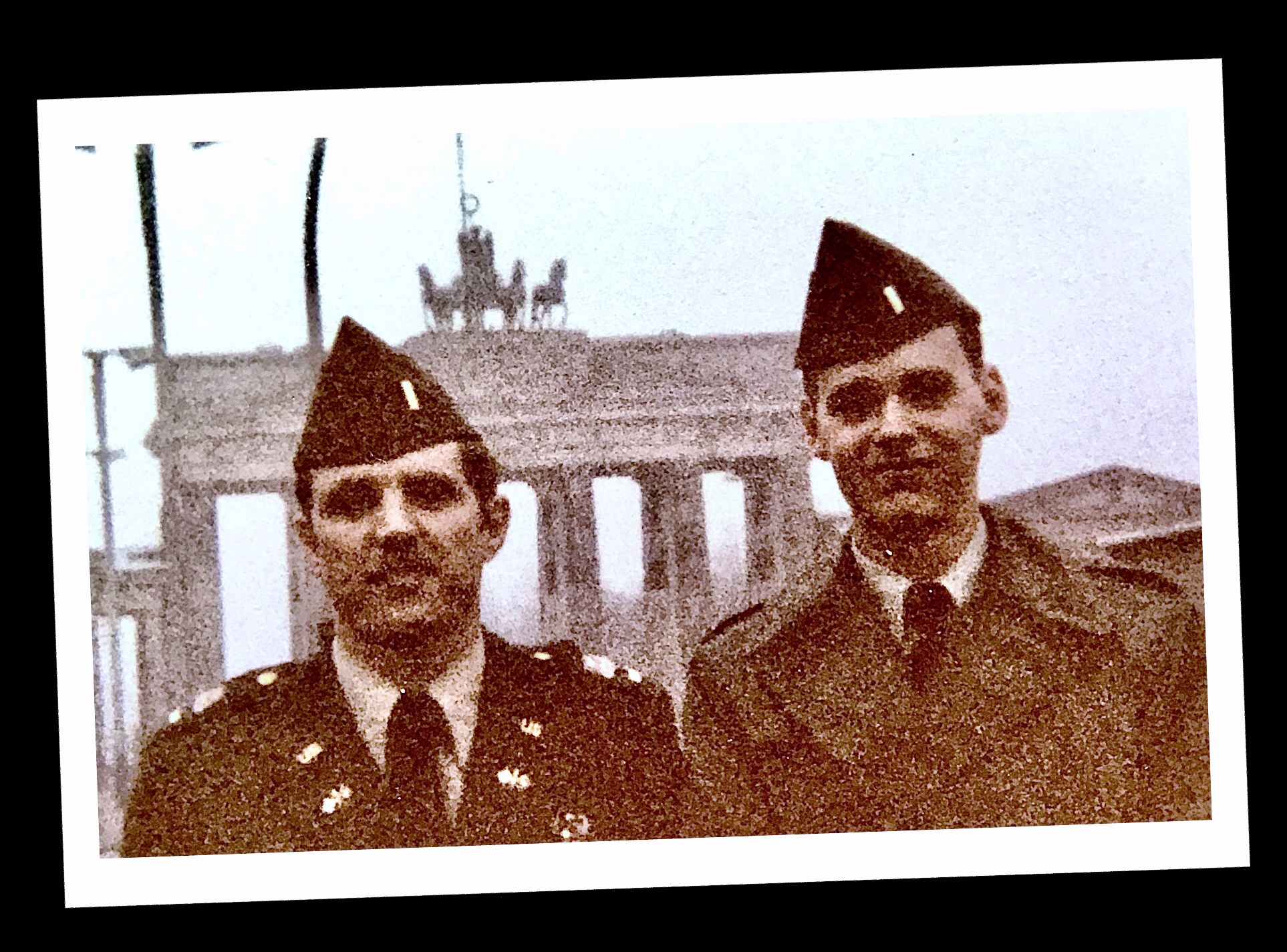Lieutenants Hall and Chase in front of the Brandenburg Gate in East Berlin