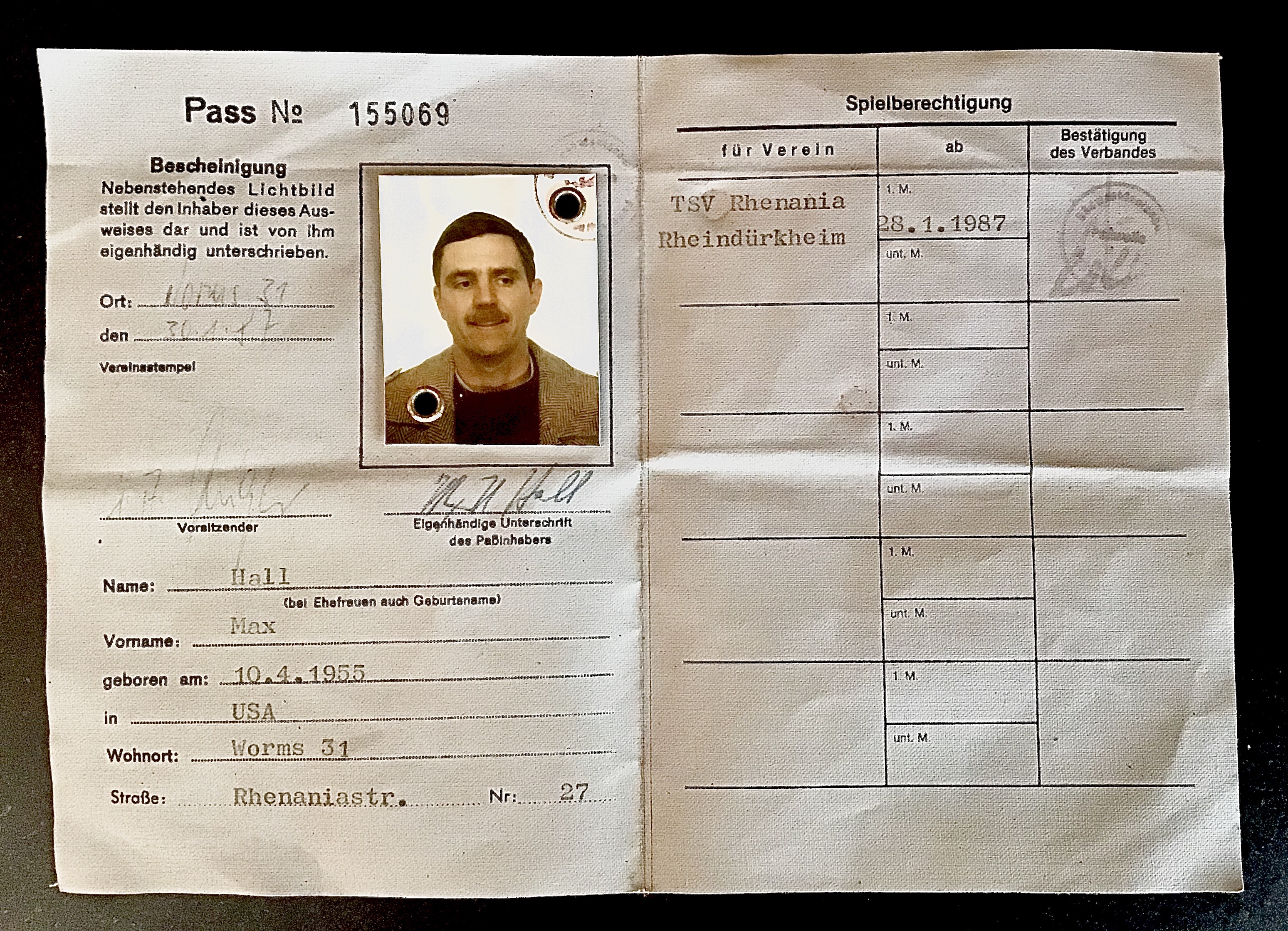 It wasn’t just about fun. As this was Germany, anyone playing soccer in an official league had to have a Spieler Pass (Player Identification Card). It’s actually the same ID used throughout Germany for all league play, up and down all levels. I had my picture taken, filled out the paperwork and submitted the required information and forms. In mid February, I received my Pass. You can see on the Pass, if another team ever wanted to pick me up, there are ample spaces to record transfers. ;-).