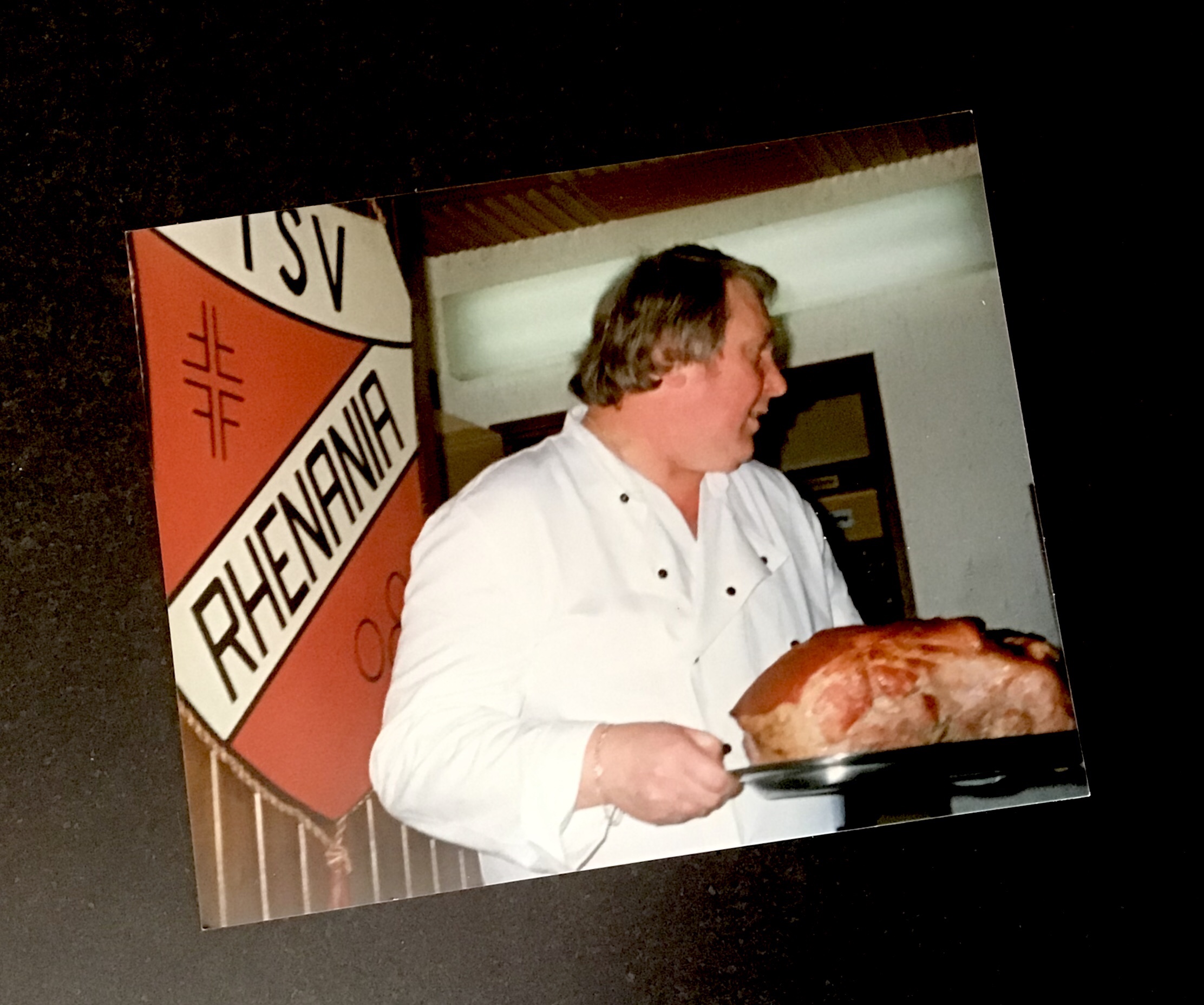 TSV Rhenania has played soccer for a long time. The club originated in 1908, and is still active today, 122 years later. Here’s their symbol (note you can also see it above in the picture of Wolfgang serving our dinner). They have a grass field now, but at the time I played, it was dirt.