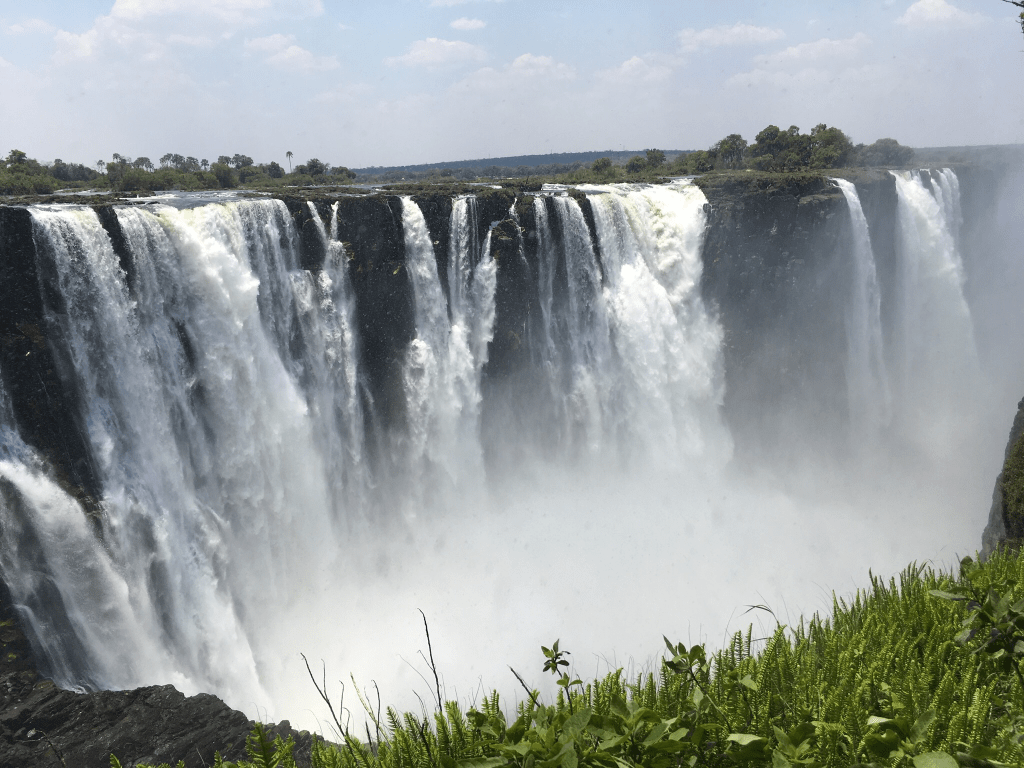 We’d arrived in Victoria Falls the night before, making the drive back from The Hide. We were only in town for two nights, so it was an active day. We started with a visit to the Falls in the morning and they didn’t disappoint. It was our second time seeing them, and the first time for our Friends Bill and Sharon. The Falls had more mist this time and it was quite evident why they are called “The Smoke that Thunders”. There were times the mist obscured the falls themselves and your only connection was the deafening sound of them crashing to the river below.