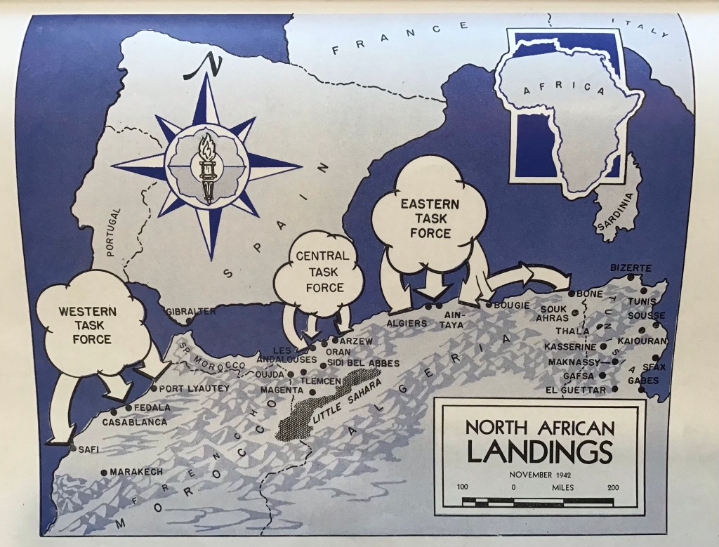 Operation Torch had three distinct landing areas in French Morocco and Algeria and they would be fighting against troops of Vichy France. The 60th was a part of the “Western Task Force” under Patton. With combined units from the 9th and the 2nd Armored Division, the Western Task Force was at about Division strength, and unlike the other two Task Forces, consisted solely of American Troops.