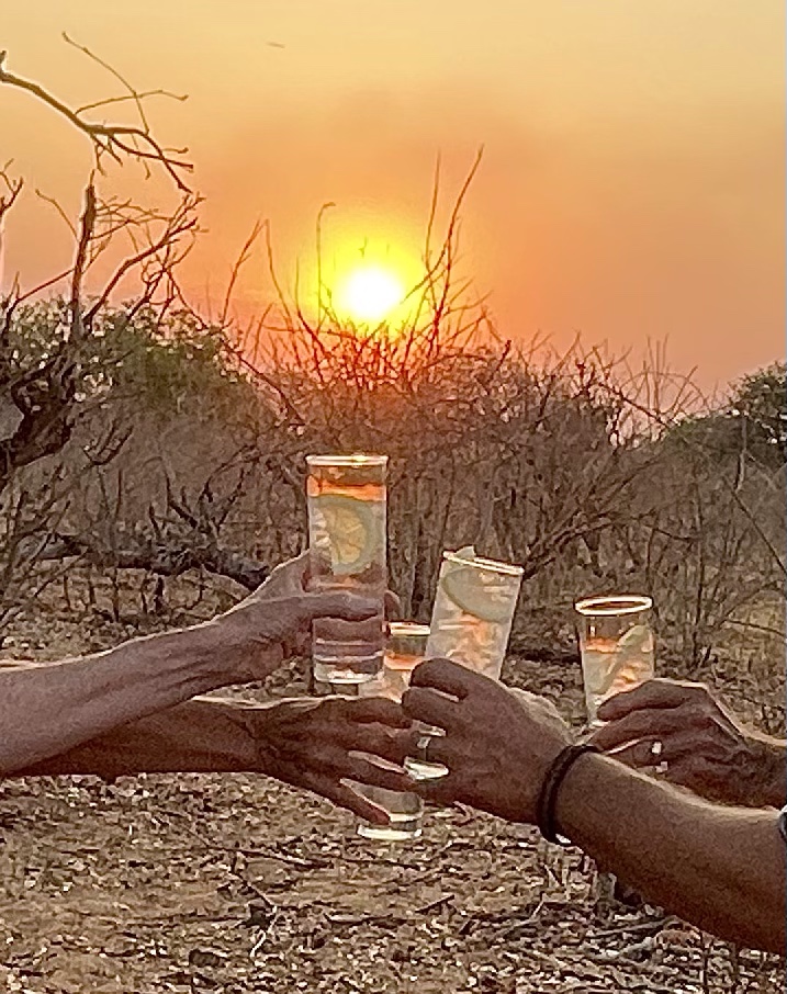 A half hour later or so, Harry piloted us to one side of the Khwai and prepared our drinks. On safaris, Gin and Tonic was virtually always my drink of choice for sundowners, but I knew that evening I was going to have a Jameson. Harry made G&Ts for the ladies and two Jamesons for Bill and I. We all toasted each other “Pula!”** and enjoyed our drinks. I have to say, I always appreciate Jameson, but it was extra tasty that day on the Khwai. As we sipped our drinks, we joked with each other the whole thing would have made a good Jameson commercial.