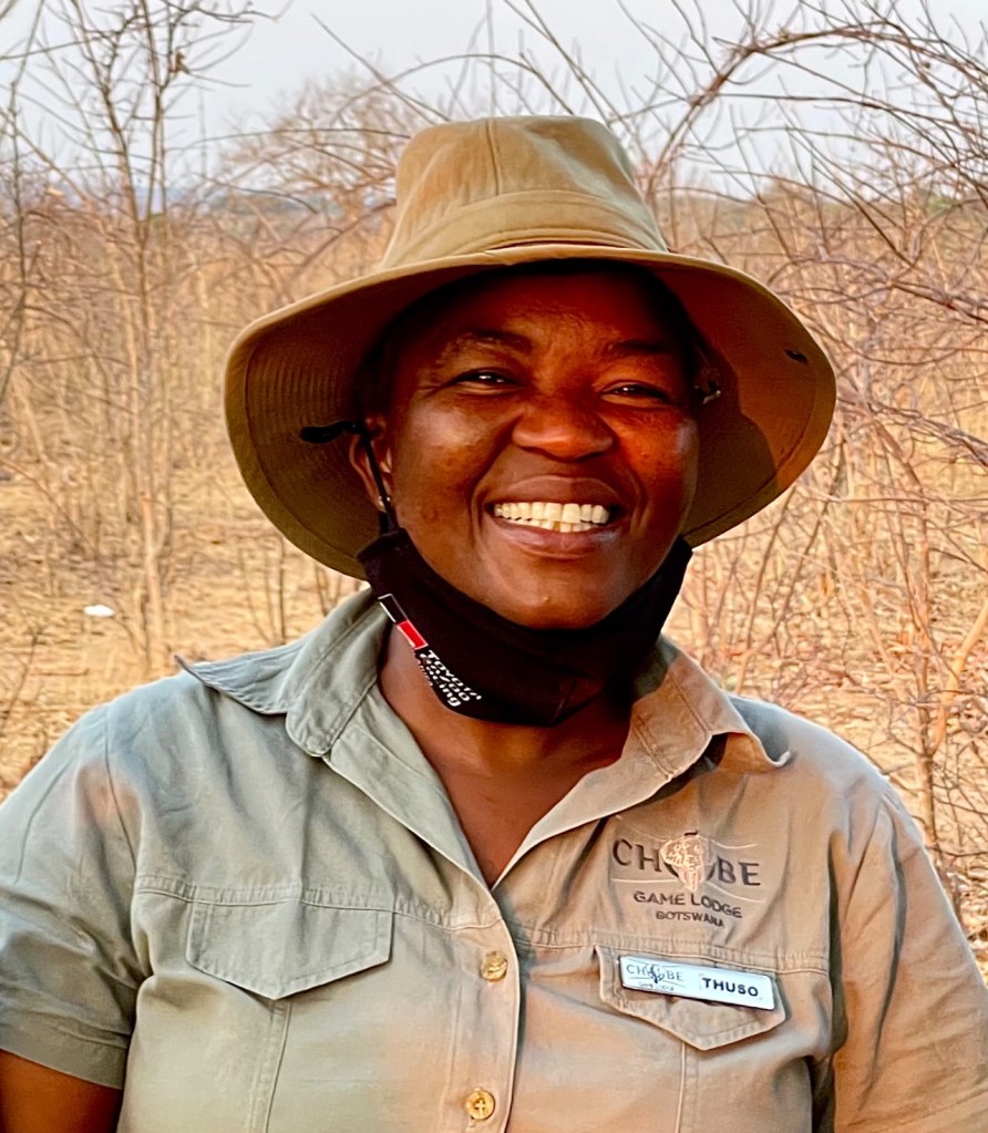 ⁃ * Thuso was the first female guide we had on this trip, or on our previous trip to Africa. In fact, all of the Guides at the Chobe Game Lodge are female. They must meet the same exact standards of schooling, tests and field work as the male guides. She was an excellent guide – as good as any of our previous guides at the other locations.