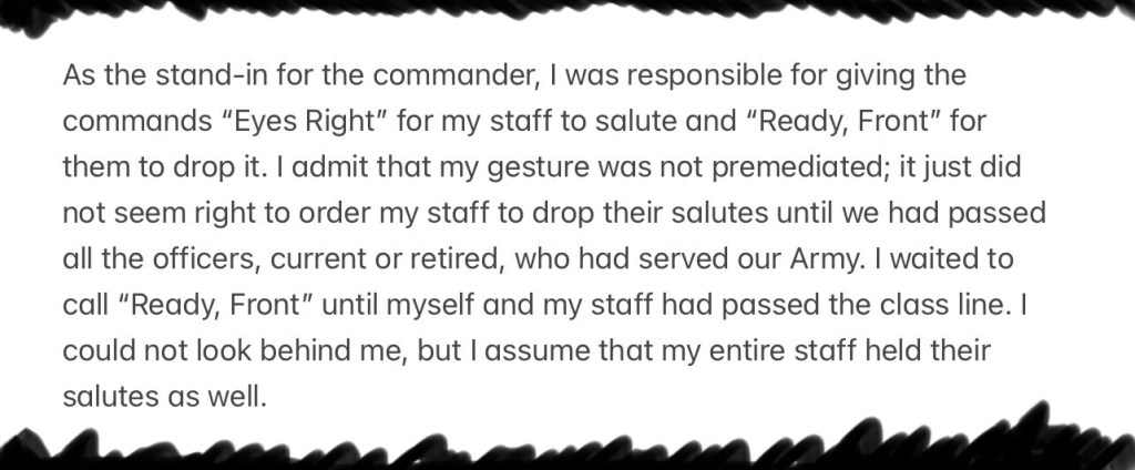 Yes, when Charlie’s email arrived in my inbox, I had my flashback to West Point. I also thought about his impact on my life and how he, along with West Point itself, changed the arc of my life. We didn’t call it mentorship back then, but that’s what it was. His mentorship and his leadership made a difference for many of us, and I’m glad he was in my life. It’s a debt I can’t repay.