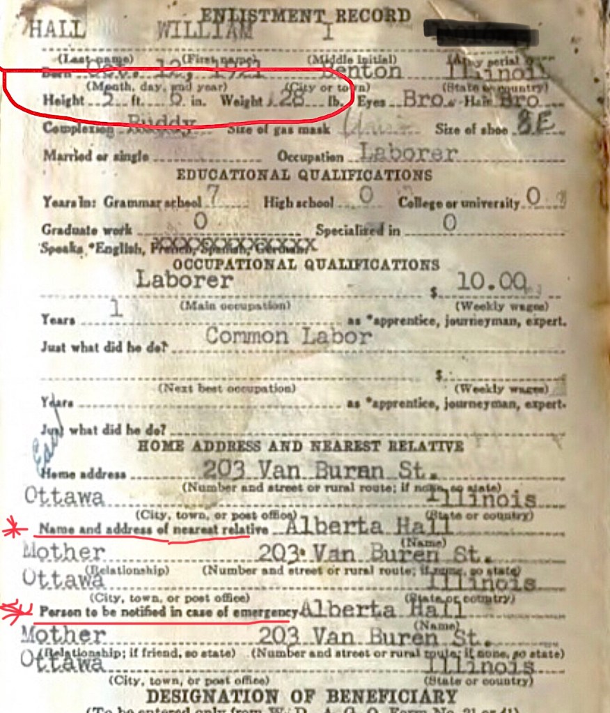 There is some fascinating information, particularly in the top half of the first page of the enlistment form. I’ve blown it up here so you can better read the form.