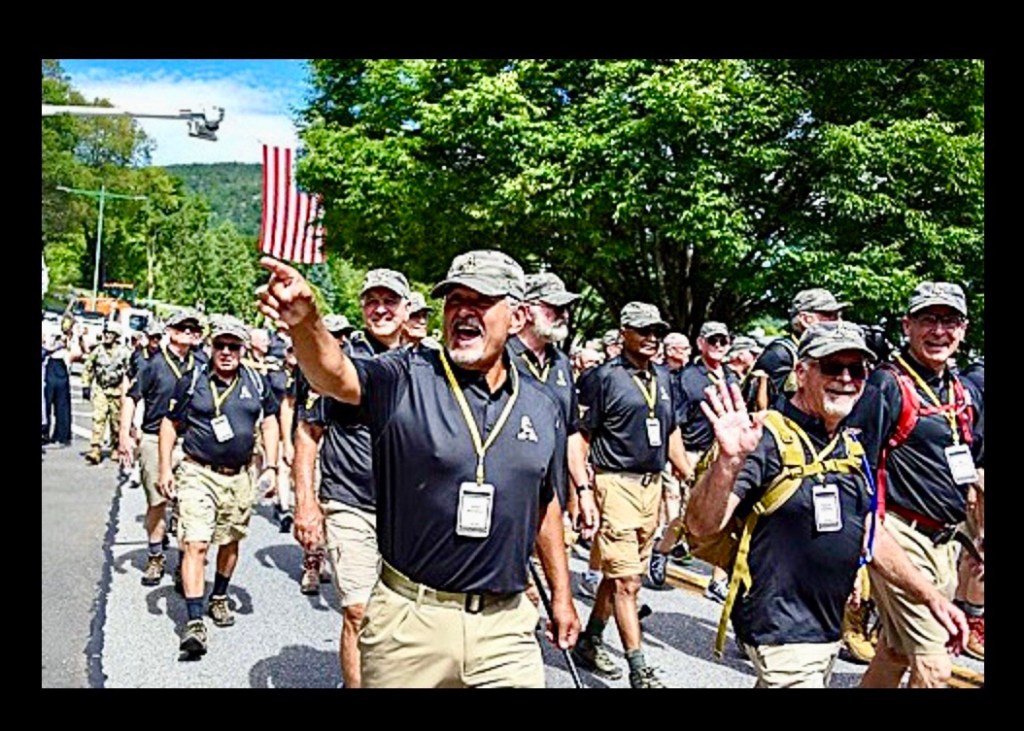 At the 12-mile mark, we arrived at the West Point Ski Slope. We Old Grads said our goodbyes and left the New Cadets. We joined our classmates who were only marching the last two miles into West Point proper. After a break the Class of ‘78 formed up. The Class of 2028 passed in front of us in company formation and unfurled their new motto, “No Calling Too Great – 2028” for the first time. We members of the Proud and Great Class of ‘78 saluted them as they passed.