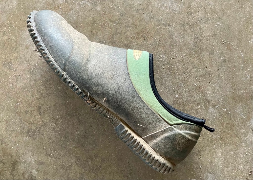 A couple of days later, I was walking Carmen and we passed Kevin and Julie’s home. Kevin came running out of his garage with a shoe in his hand. He’d found the shoe! Except he hadn’t. This was one of the new muck shoes I’d recently bought! What?! It turns out we’d left the garage door open earlier that morning and Kylie saw his opportunity, and seized it, so to speak.