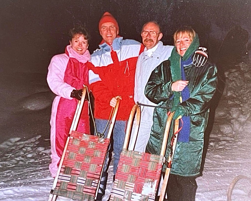 While stationed in Germany in the ‘80s, we took many ski vacations to Austria, sometimes for a long weekend, sometimes for a week. We often went with our friends Jim and Res to the Austrian town of Nauders on the Italian border. The skiing was great there and we enjoyed many fun trips with them.