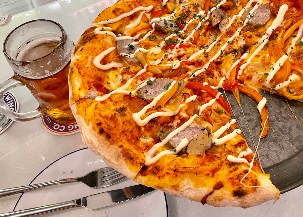 Now you might think the Germans would have “invented” the Bratwurst Pizza, or at least served it, but I’m doubtful of that and never saw it when we lived there. Cathy and I were stationed in Germany for 9 years with the Army and loved both the country and the people. Having said that, the German people live up to at least one stereotype – They in fact are an “orderly” people and tend to follow rules. As a result, they serve bratwurst in Germany, and they serve pizza in Germany at Italian restaurants. The two together?! Niemals! (Never!) I’m glad someone at Silver Branch thought “Hmmm. I like brats. I love pizza. AND, I enjoy drinking bier with both of them. Let’s play around in the kitchen and see what we can come up with.” Pizza, brats and beer – what could possibly go better together?