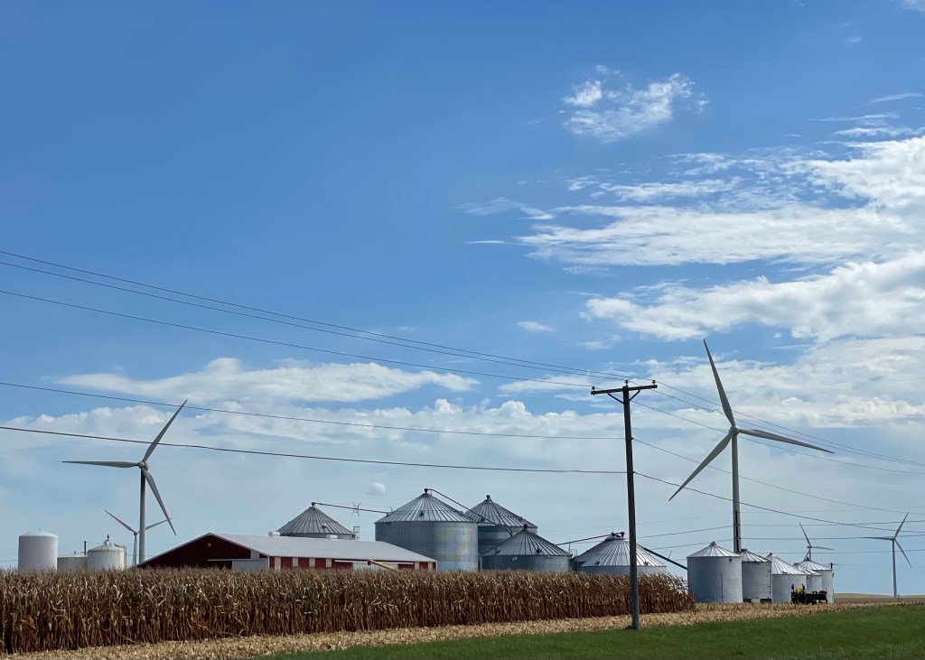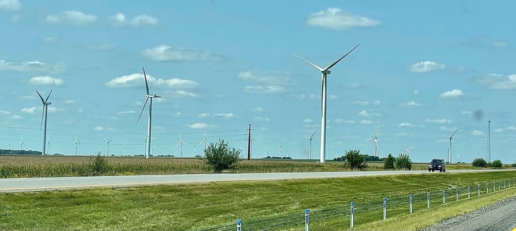 It was 2017 and I was driving home to see mom. She hadn’t been well for a while and as a result, I was probably off a little. I was going to stay at my Sister Berta and her husband Jack’s home near Pontiac, and Google Maps was taking me a different way for the last section of the trip. As I was driving north from Indianapolis, I entered a field of wind turbines. There were hundreds of them and it went on for miles. The turbines were huge, with three blades turning on each. I looked across the fields, mesmerized.