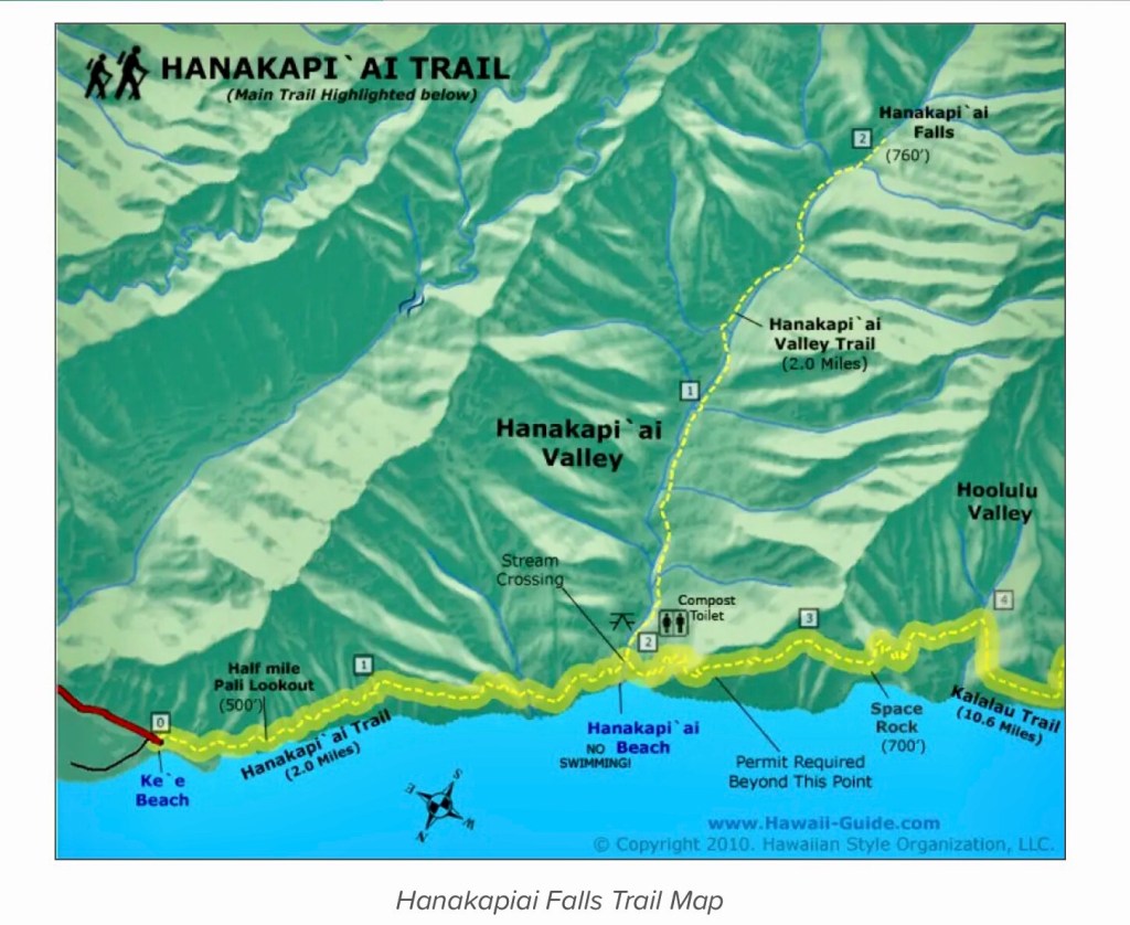Bonnie, my sister-in-law, contacted Cath and I to see if we were interested in a couple of hikes while visiting Kauai, one of the Hawaiian Islands, with her and her daughter Lana. The hike to Hanakapi’ai Falls sounded interesting, although not for the faint of heart. Bonnie had completed the hike several years earlier with her husband Don, before he passed away. She warned us the trail was a challenge – It’s an eight mile round trip trek with mud, lava rock, roots and stream crossings, with over 1,800 ft of elevation change. It also promised a tropical forest, panoramic ocean views and the Falls themselves, which drop over 400 feet.