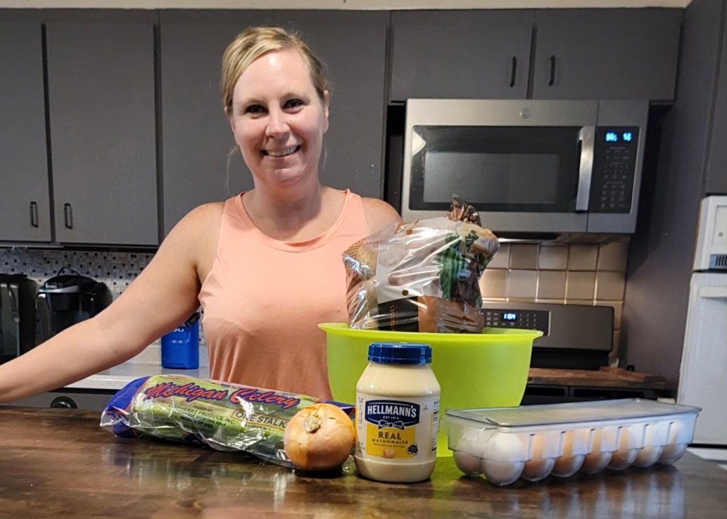 – Thanks and photo credit of the picture of Diane about to make potato salad, to her four year old daughter, Riley! Roberta took the pics of the bowl itself.