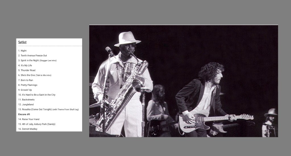 Springsteen’s music is great of course, but what draws me to him are his lyrics. He’s a wordsmith and knows how to tell a story. “Born to Run”, “The River” (Maybe my favorite Springsteen song), “Born in the USA”, “One Step Up”, “Dancing in the Dark”, “Glory Days”… you really need to listen to the words to see the pictures they paint. While the music may sound cheerful, the words often aren’t. I always chuckle at the people who love “Born in the USA”, but don’t really understand the story the lyrics are telling.