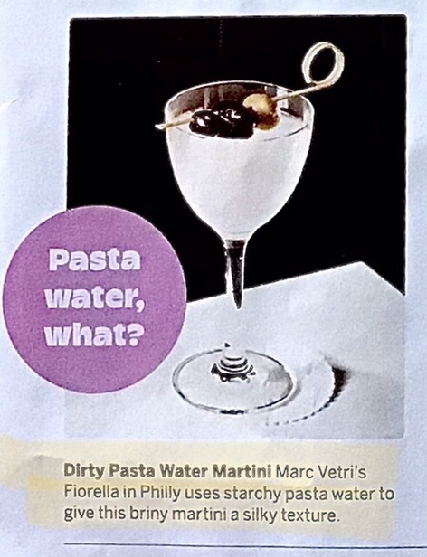 This blog was half tongue-in-cheek and half rant. But a Dirty Pasta Water Martini? Really? It sounds like someone cleaned out a pot and used it to dilute a martini. 😉
