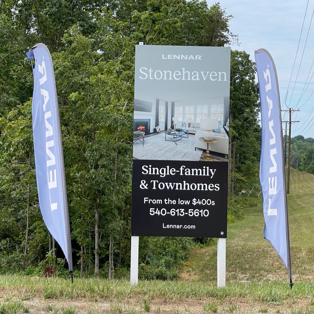 The new housing development, Stonehaven, sits in the middle of nowhere, 6 miles west of Warrenton and 12 miles north of Culpeper. Some thought it might provide “affordable housing” for the area, but with homes starting “in the low $500s”, I don’t think so. Or maybe my definition of affordable housing is a bit different from others.